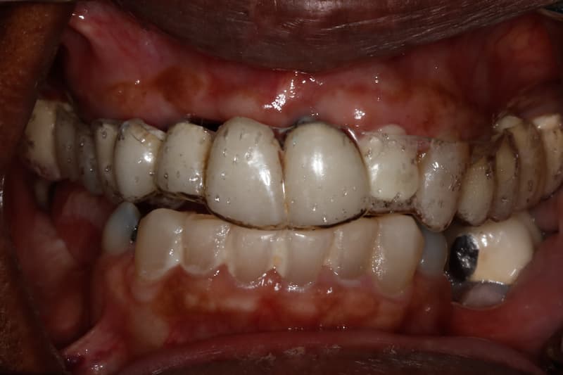 If teeth need to be removed, the procedure begins with tooth extraction. Next, an abutment is placed in the jawbone where the tooth root would normally be.